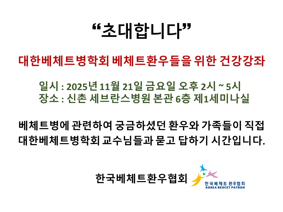 (안내)대힌베체트병학회 베체트환우들을 위한 건…